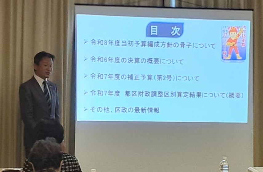 第55回、第56回区政報告会を開催させていただきました! 2025年11月26日 最終更新日時 : 2025年11月26日 西垣誠 過日お知らせのとおり、11月23日、25日に区政報告会を開催させていただきました。23日の豊洲の回では、冒頭に大久保区長にもご挨拶をいただき、参加者の皆様方もお喜びの様子でした! また、古石場文化センターの回では初参加の方もいらっしゃり、とっても嬉しく、やり甲斐を感じることができました。 次回は3月を予定しておりますので、是非ともご出席ください!心より歓迎申し上げます! FacebookXBlueskyHatenaCopy